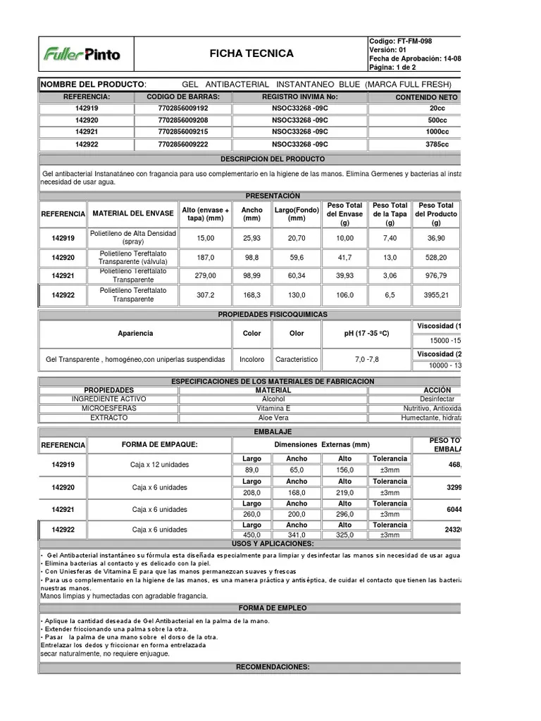 Gel antibacterial instantáneo con fragancia para uso complementario en la higiene de las manos. Elimina gérmenes y bacterias al instante sin necesidad de usar agua.